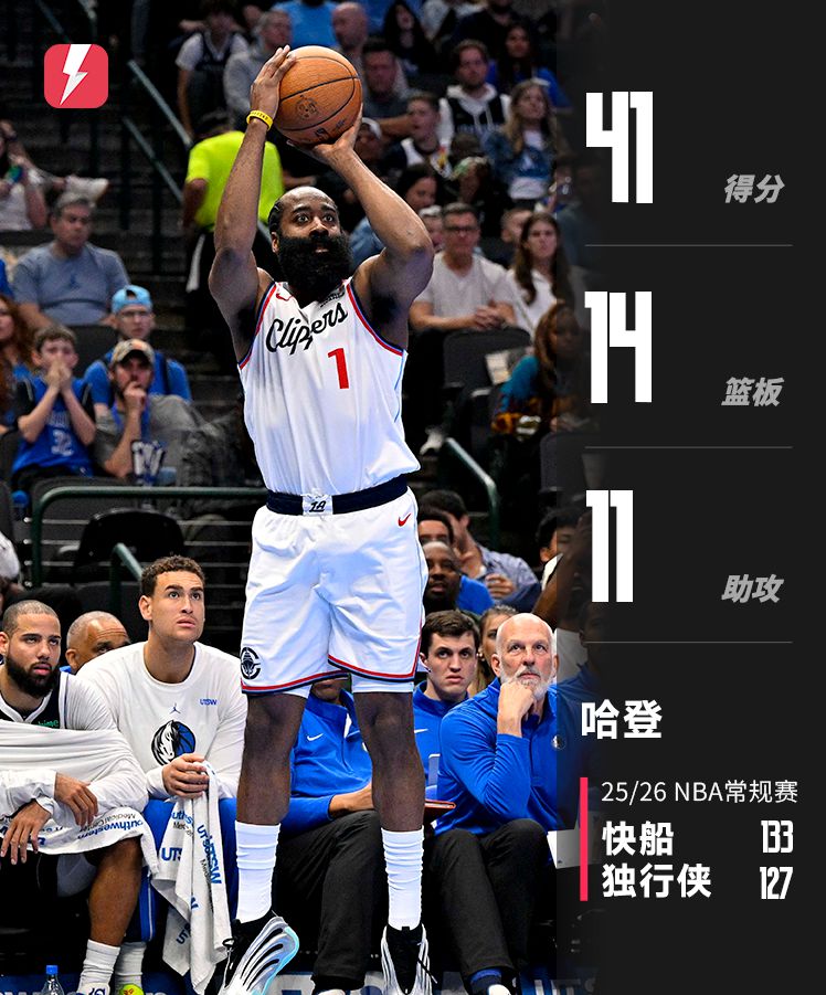 历史最老40+三双球员!哈登轰下41分14板11助