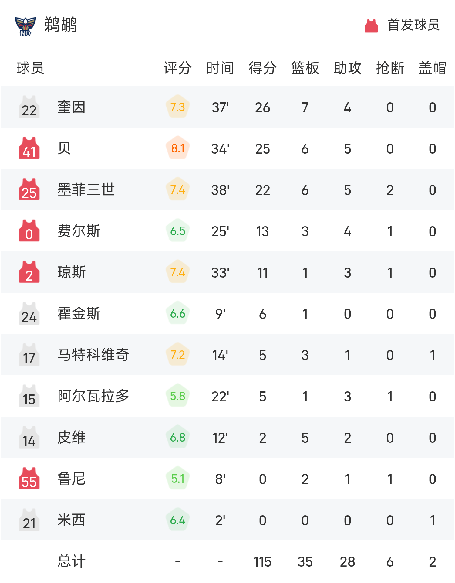 球员的表现超出了预期,特别是在压力之下依然稳健