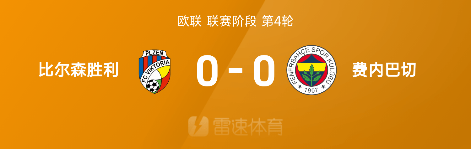 6686体育app11月07日讯 25/26赛季欧联联赛事阶段第4轮,比尔森胜出局0-0互交白卷闷平费内巴切。