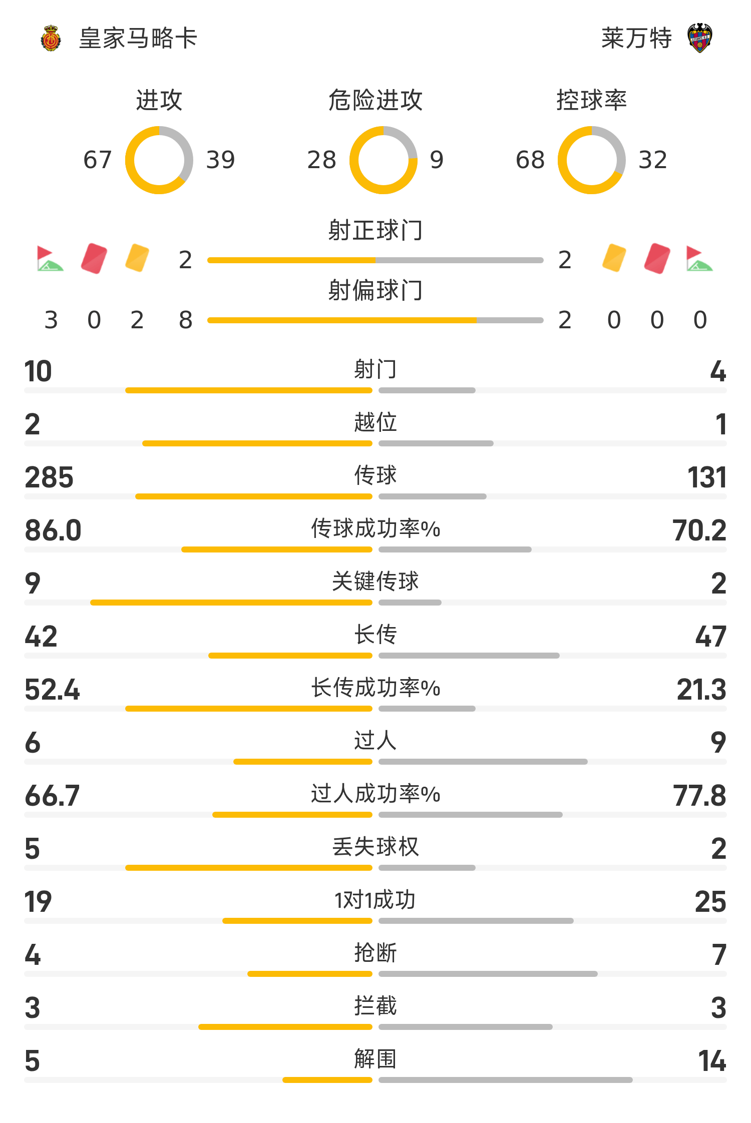 皇家马略卡首发阵容:1-罗曼、24-瓦尔简特、22-莫西卡、23-马费奥、21-拉伊洛、10-达德尔、8-莫拉内斯、12-科斯塔、18-约瑟夫、17-维吉利、7-穆里奇