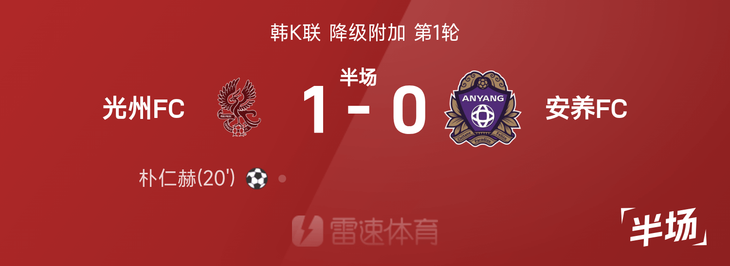 韩K联半场:朴仁赫破门,崔奎贤进球被吹,光州1-0安养
