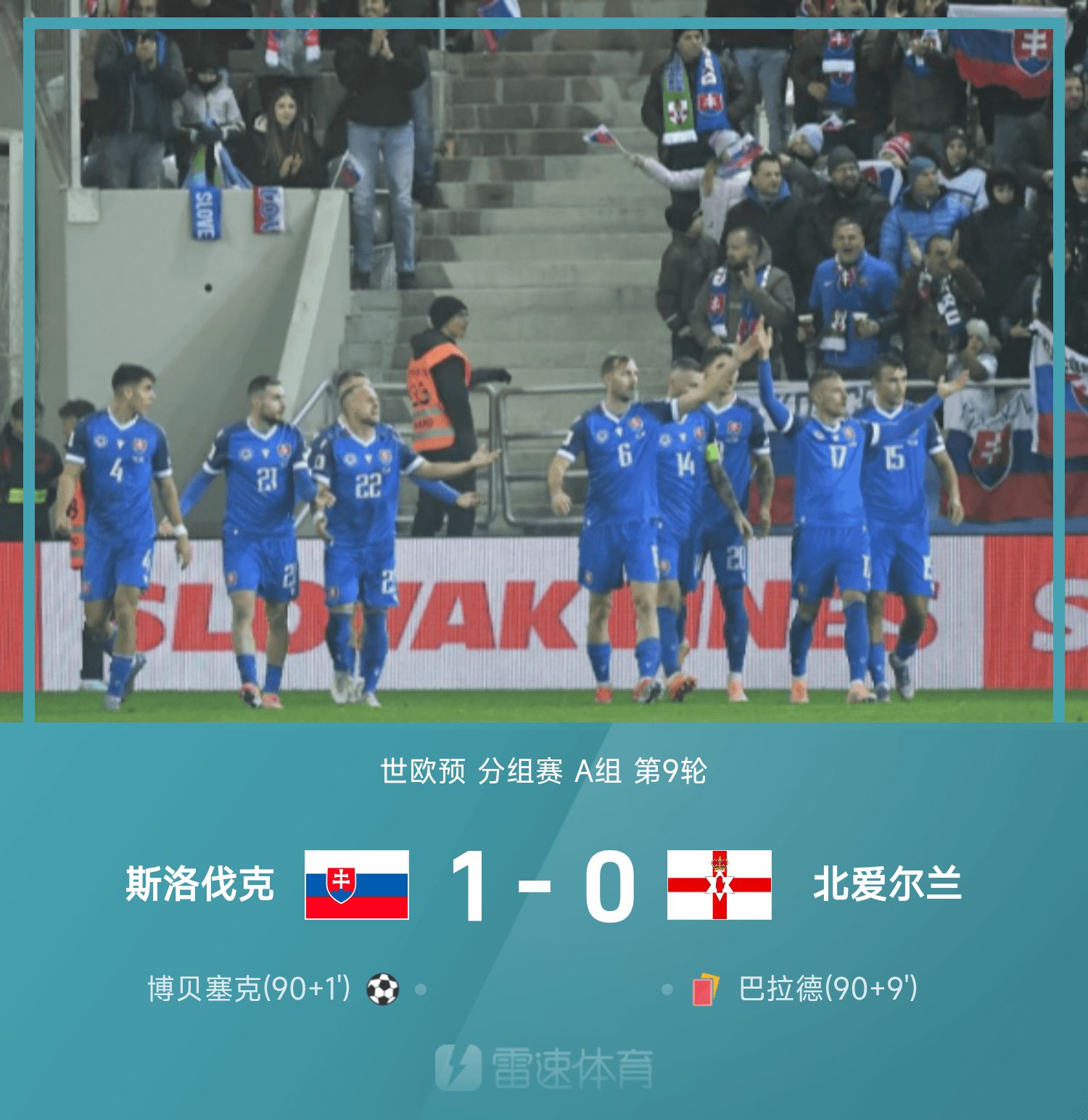 世欧预战报:博贝塞克最后一投,斯洛伐克1-0力克10人北爱尔兰