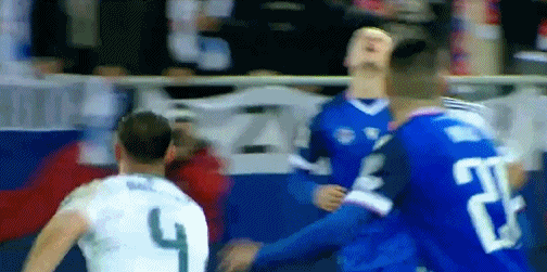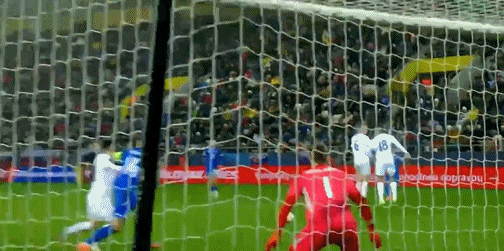 45’什克里尼亚尔三秒区内抢点大力抽射,将皮球直接打高