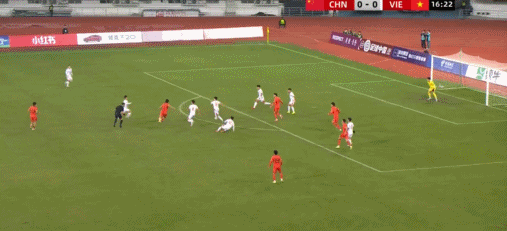 33’中国队左路输送威胁传禁区,门前包抄球员慢了一步