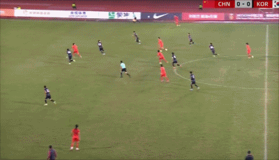 21’汪士钦自由球开到三秒区内,韩国顶球清球险些乌龙