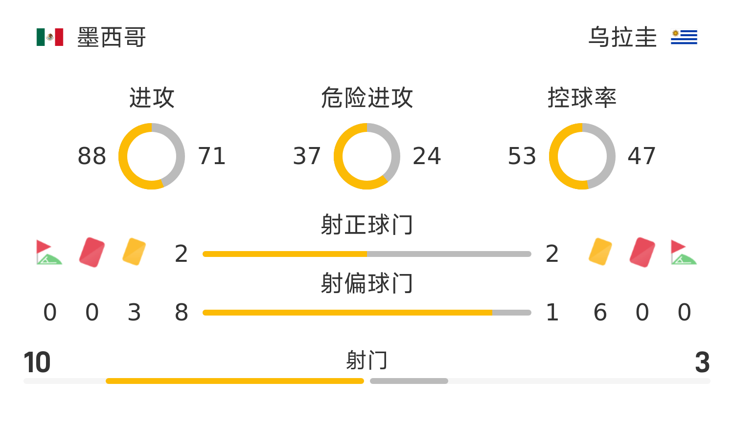 13’乌拉圭防线差错,希门尼斯拿球被守门员+后卫双重夹击挡射门