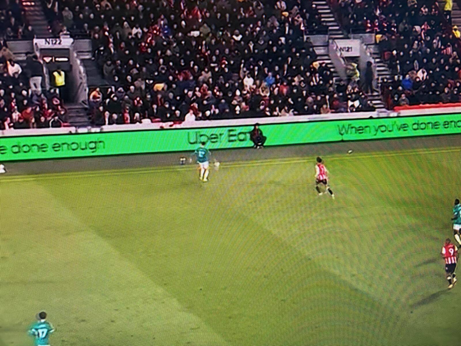 双方球队都准备迎接自由球,在原主裁判判西蒙·胡珀因肌肉受伤后、下半场登场的裁判员蒂姆·罗宾逊最初在纠正人墙位置。但罗宾逊随后花了相当长的时间与视频裁判沟通,进行潜在的十二码检查。