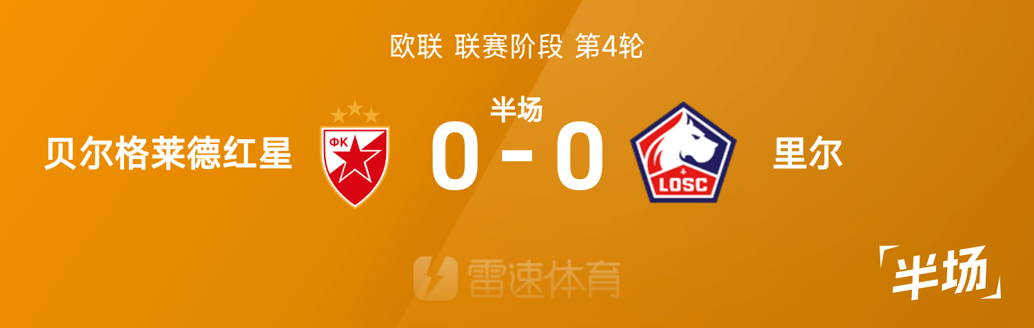 6686体育app11月07日讯 25/26赛季欧联联赛事阶段第4轮,贝尔格莱德红星迎战里尔。半场战罢,双方赛果分暂为贝尔格莱德红星0-0里尔。