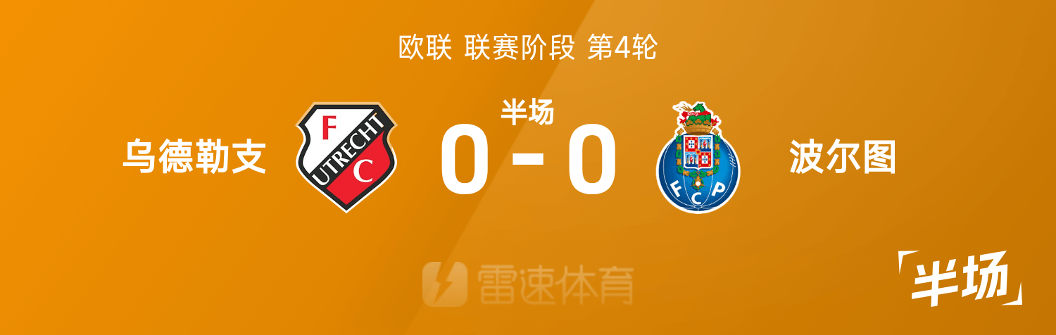 欧联半场:维加造险,卡拉瓦尼险乌龙,乌德勒支0-0波尔图