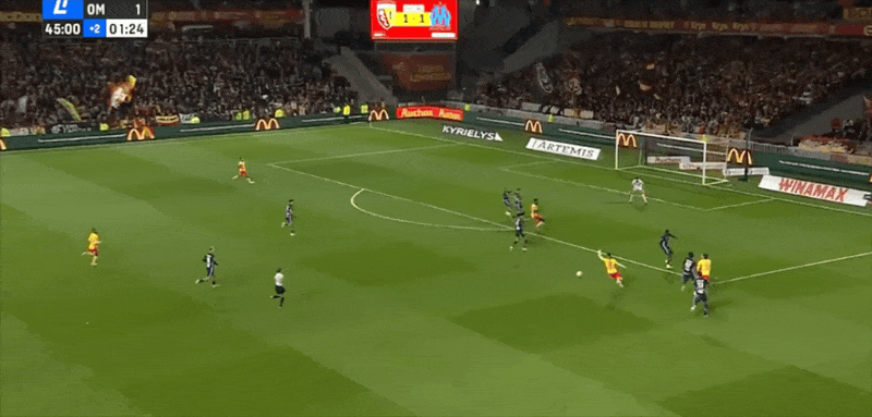 法甲半场:格林伍德破门,爱德华点射扳平,马赛1-1朗斯