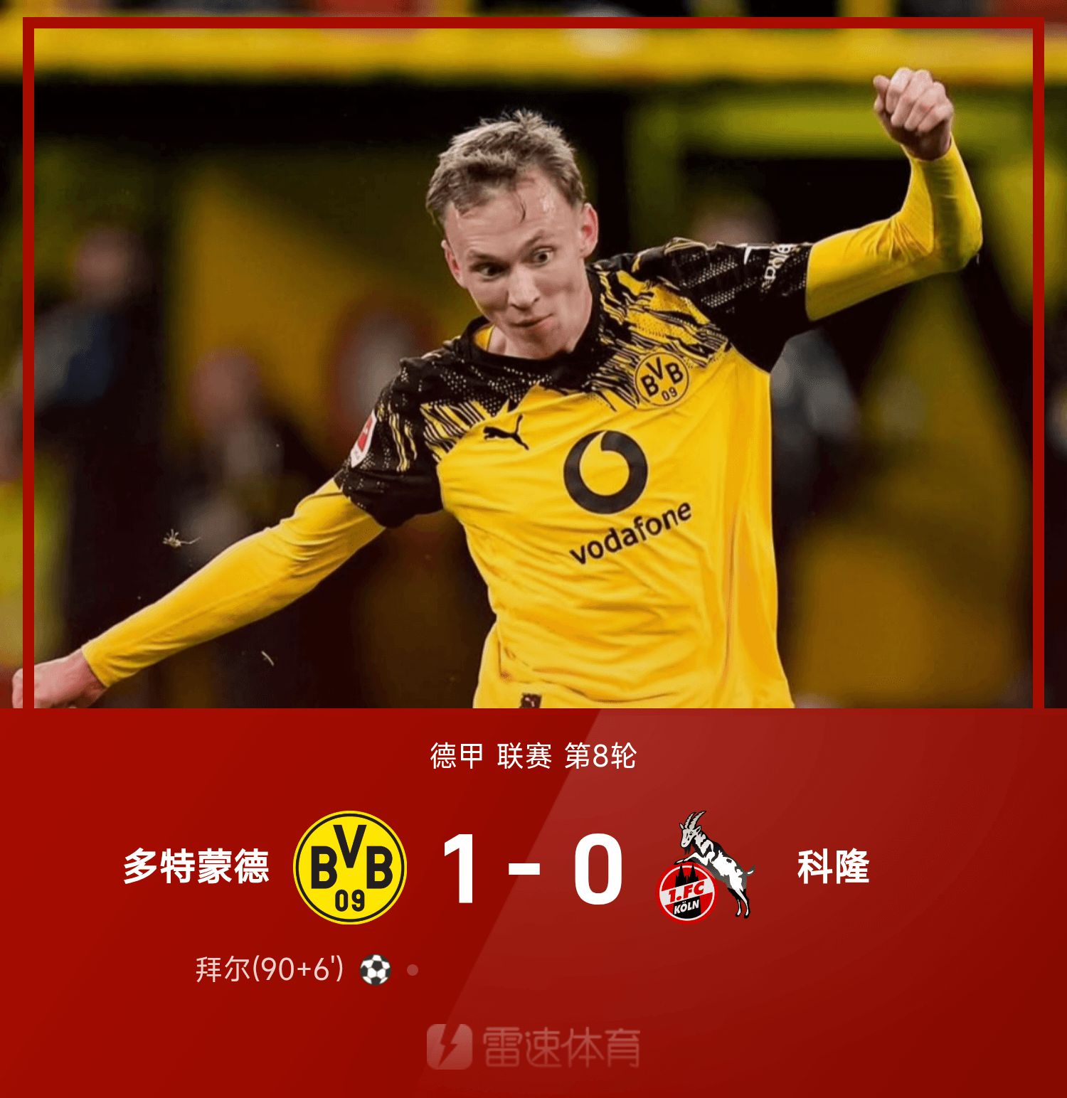 6686体育app10月26日讯 25/26赛季德甲联赛事第8轮,多特蒙德1-0战胜科隆,拜尔第90+6分钟上演最后一投。全场竞赛,拜尔补时破门最后一投制胜,科隆守门员斯克韦伯屡献神扑难救主,赛义德·马拉屡失良机。
