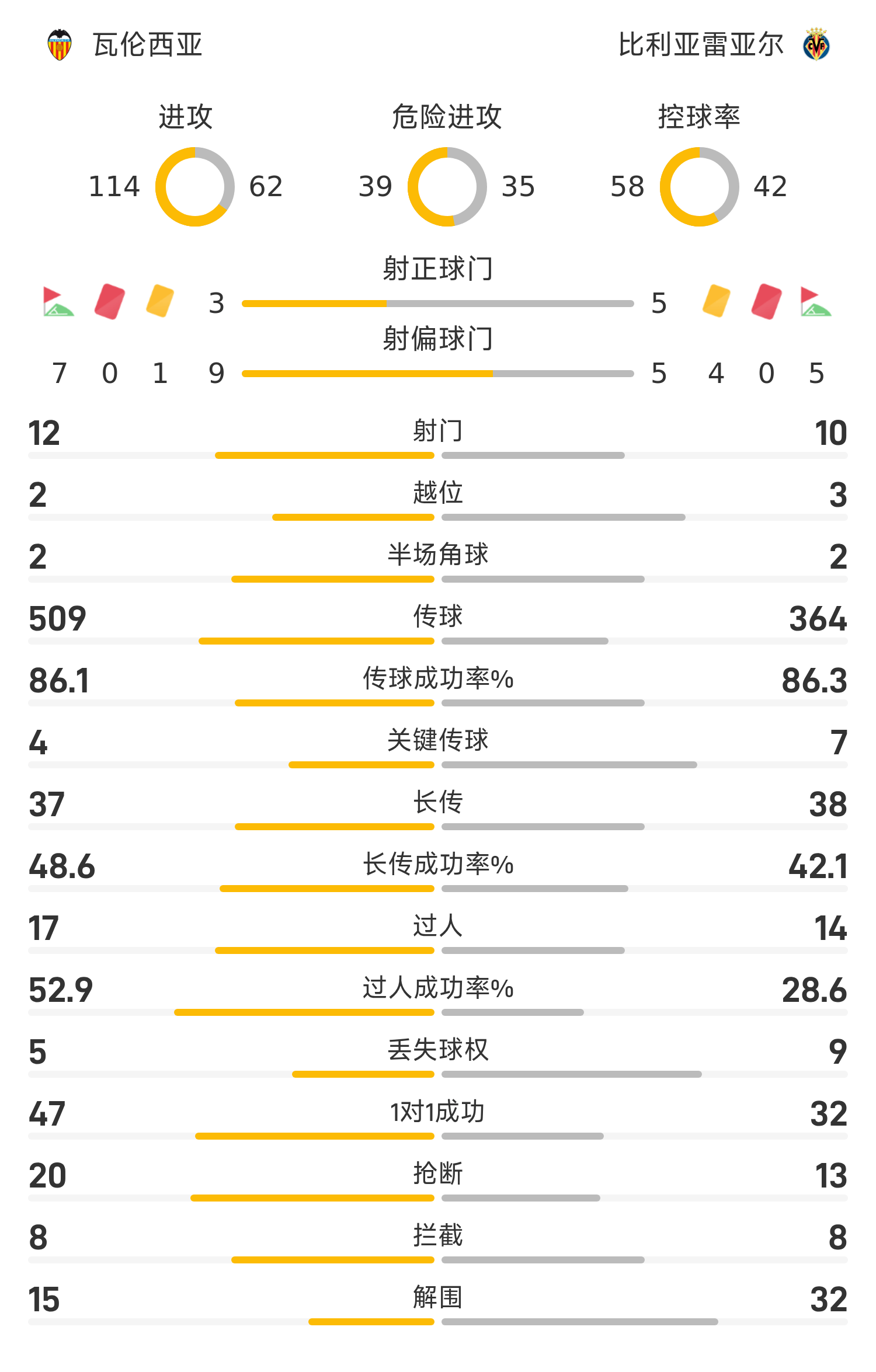 瓦伦西亚首发阵容:25-阿吉雷扎巴拉、14-加亚(61’21-巴斯克斯)、12-科雷亚(83’19-拉瓦)、3-科佩特、5-塔雷加、18-佩佩卢(83’22-桑塔玛利亚)、7-丹朱玛、11-里奥哈、8-格拉(61’10-阿尔梅达)、15-贝尔特兰(46’9-杜罗)、16-洛佩斯