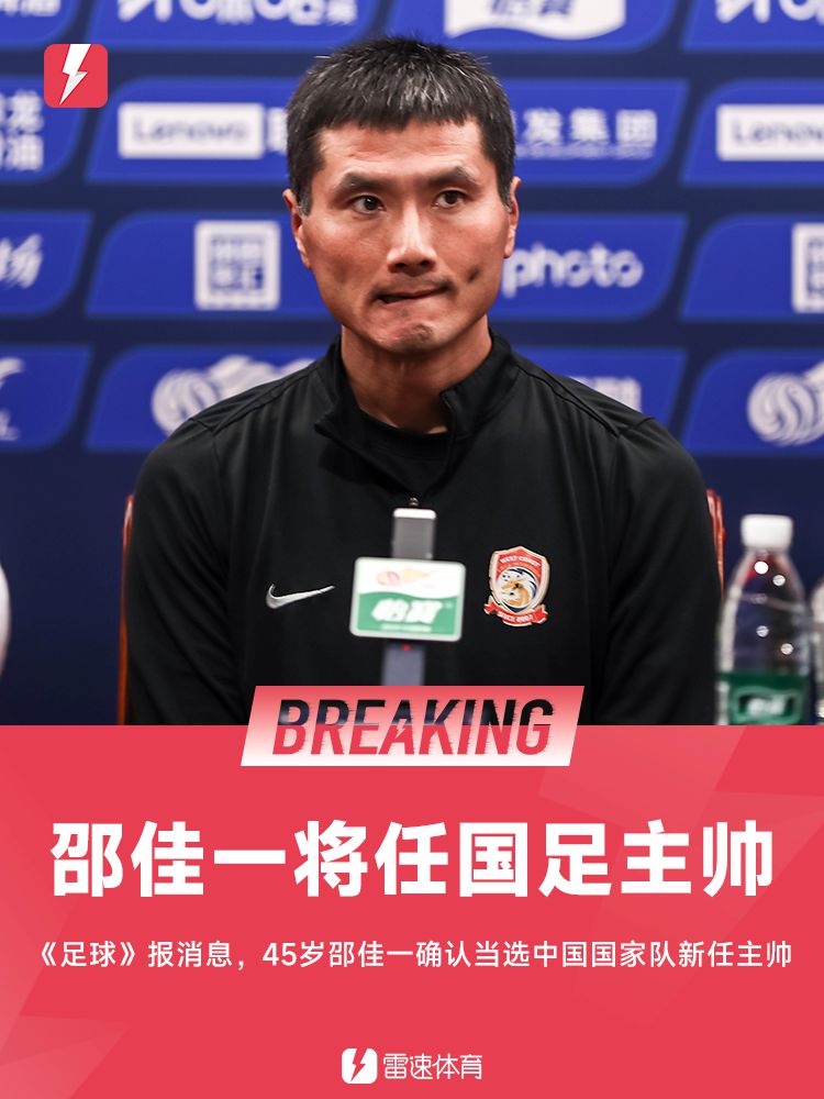 6686体育app11月5日讯 据《足球报》 报道,前中国男足国脚、助教&现青岛西海岸主帅邵佳一确认当选中国男足主帅。